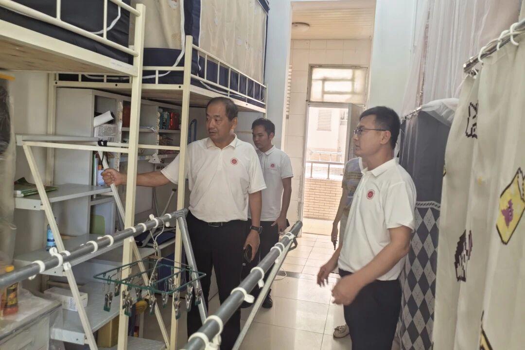 新学期开学在即,为切实保障学院学子返校后的住宿安全,筑牢校园安全防与健康防护防线。2025年8月31日,旅游与公共管理学院领导班子带领全体辅导员组成检查团队,深入学生宿舍,开展新学期开学前宿舍安全卫生专项检查。