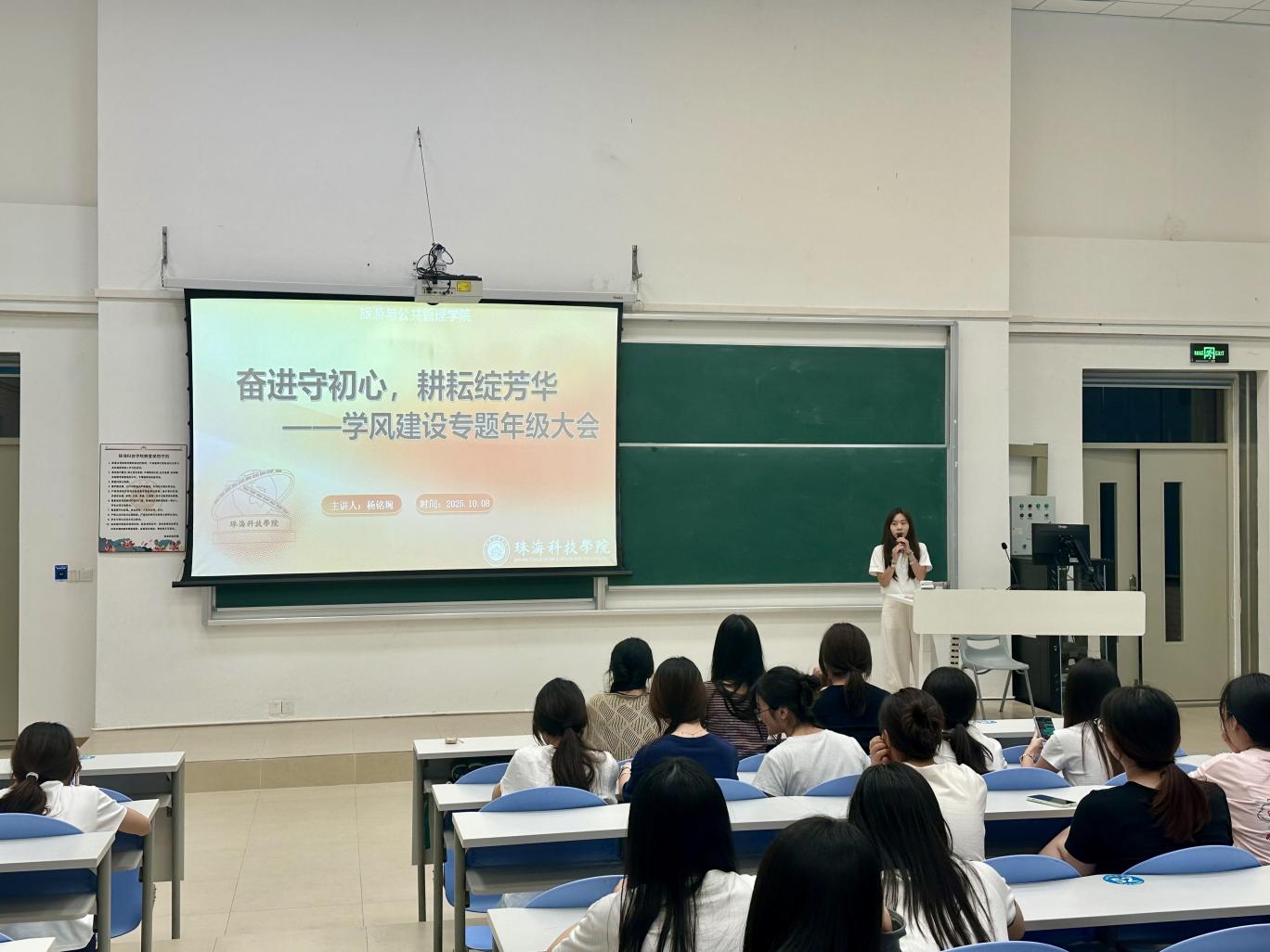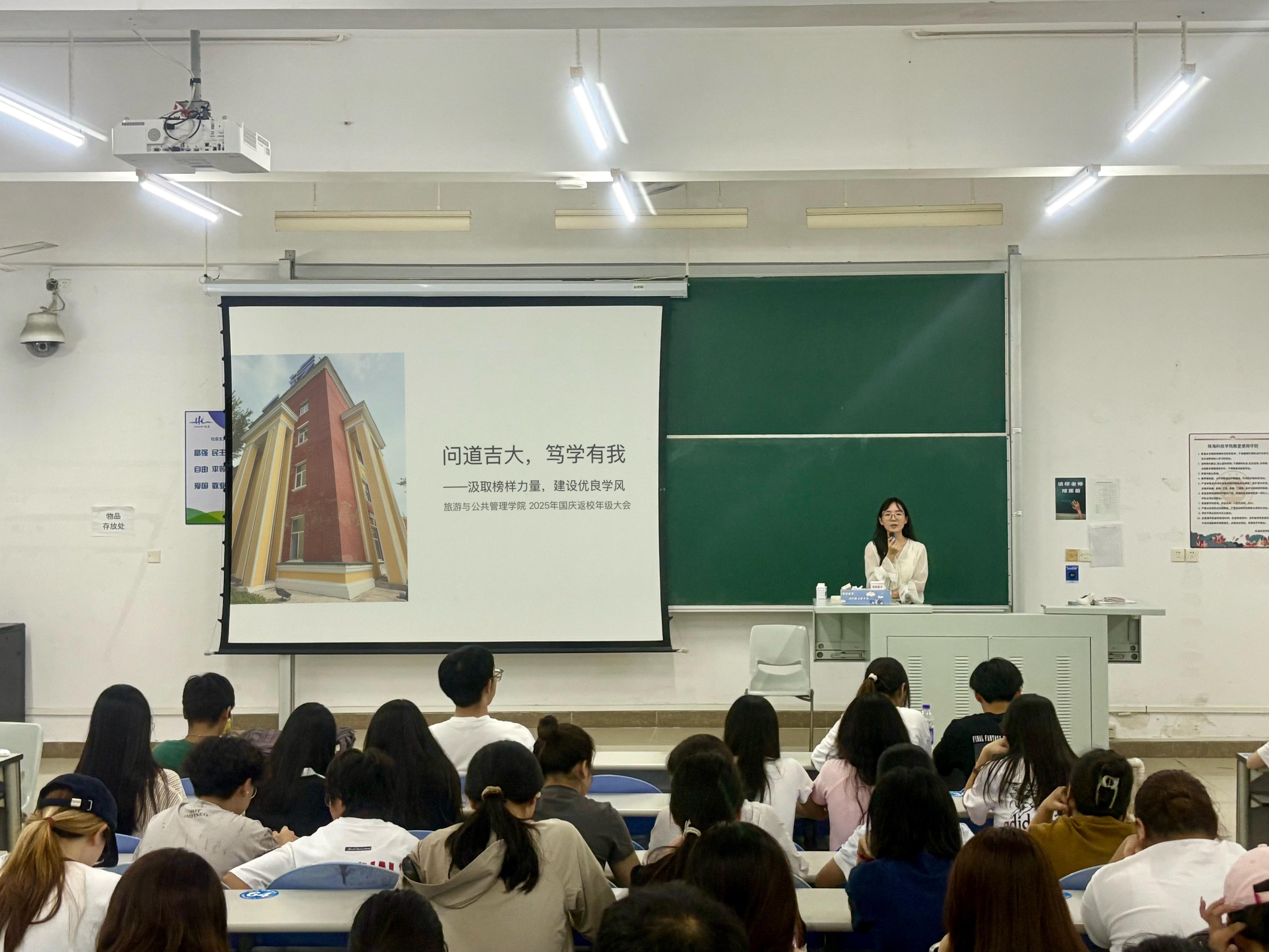 2025年10月8日20:00,珠海科技学院旅游与公共管理学院在国学院、博文楼分别召开各年级国庆返校大会。大会旨在帮助学生迅速收心归位,明确新学期学业方向与成长重点,全体辅导员及学生参会。会议围绕学风建设、教学评估、疫情防控等核心内容展开,为新学期各项工作的推进夯实基础。