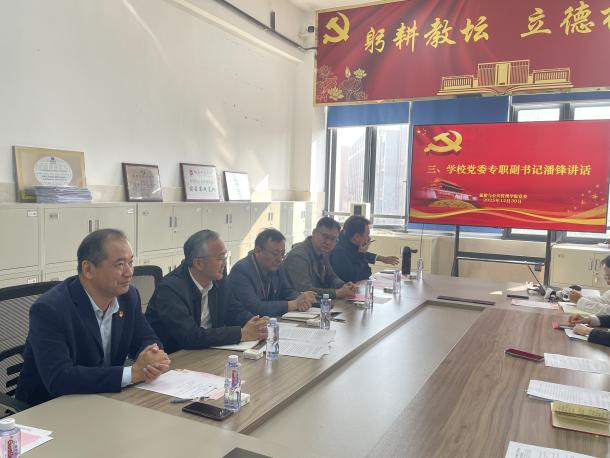 潘锋首先强调了民办高校党建工作的重要性。他指出,必须始终坚持和加强党的全面领导,牢牢把握社会主义办学方向,将党的政治建设摆在首位。其次,学院要紧密围绕国家战略需求和区域经济社会发展,科学谋划、积极融入学校“十五五”发展规划的编制与实施。要深刻学习领会、贯彻落实党的二十大及二十届四中全会精神,将中央的重大决策部署转化为推动学院改革发展的具体思路和实际行动。
