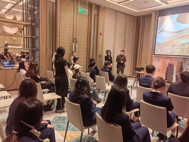 随后,酒店总经理孟总围绕凯悦酒店集团的品牌发展历程、珠海拱北凯悦酒店的项目定位及在地化运营特色,为师生作了一场专题分享。对于2025级同学而言,分享中关于品牌创新、在地文化挖掘与体验设计的内容,与《文旅行业创新创业实践》课程高度契合,不少同学边听边思考如何将文旅新业态融入传统酒店场景。而2024级同学则更多从《酒店业营销社会实践》出发,关注酒店的目标客群分析、市场定位策略以及线上线下推广手段,并在交流环节中主动提问。